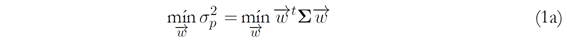 El portafolio con mínima varianza global será el portafolio de ponderaciones que soluciona el problema de optimización: