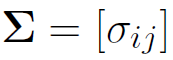 es la matriz de varianza-covarianza de los retornos de precios de las acciones. Nótese que el riesgo de la cartera () involucra la varianza de los retornos de cada uno de los títulos que la constituyen y, además, la covarianza de los retornos de cada uno de estos.
