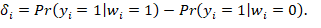 Debido a la naturaleza binaria de la variable de respuesta, el EC de interés se mide en términos de diferencias en la probabilidad de asisitir a los eventos mencionados entre los jóvenes cuyo jefe de hogar participa en estas actividades culturales y los jóvenes cuyo jefe de hogar no lo hace. Así, el EC para el i-ésimo individuo (