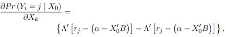 (11)en donde la expresión inmediatamente anterior refleja el cambio en la probabilidad de que suceda la alternativa j frente a una variación en Xk (Maddala, 1986).