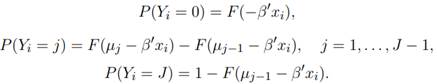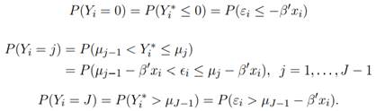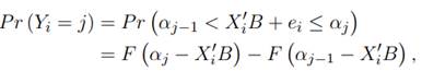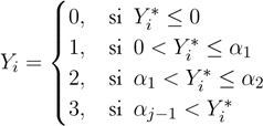 Conviene observar que, aunque estos umbrales son desconocidos, dado que Yi es una variable ordinal se deben satisfacer que 0 < α1< α2< ... < αj −1 De esta manera, el modelo estaría definido por: