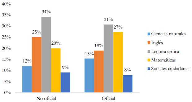 En cuanto a la naturaleza jurídica de la institución educativa (oficial o privada), este factor es determinante en el rendimiento académico. Estudiar en un colegio público influye en mayor medida en el rendimiento académico que hacerlo en una institución educativa privada.