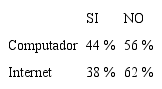En cuanto al acceso de los estudiantes a tecnologías de apoyo al aprendizaje, el 44 % de los estudiantes disponen de computadores y el 38 % tiene acceso a la red de internet, lo cual facilita las consultas y el uso de herramientas electrónicas (ver Tabla 3). Esta situación es preocupante, si se considera que más de la mitad de los estudiantes de educación media en el departamento de Nariño no disponen de computador, ni tampoco poseen conexión a internet, una condición indispensable en un mundo globalizado e interconectado.