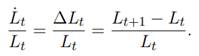 (7)Donde, αt representa la participación del factor capital dentro de la producción total y βt representa la participación del factor trabajo dentro de la producción total. Posteriormente se hace la aproximación de las tasas de crecimiento graduales sujetas a estudio, con respecto a otras tasas de crecimiento de períodos de tiempo inmediatos a estas aplicando primeras diferencias. Es decir: