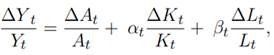 (11)Obteniendo así la ecuación fundamental de la contabilidad del crecimiento de Solow: