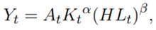 HLt = Factor trabajo (ajustado por una medida de capital humano) At = Cambio tecnológico, o PTF α = Elasticidad de la producción agregada con respecto al factor capital β = Elasticidad de la producción agregada con respecto al factor trabajo
