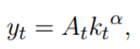 yt = Producto por trabajador (medido con un ajuste por capital humano) At = Cambio tecnológico o PTF kt = Stock de capital físico por trabajador (medido con un ajuste por capital humano).