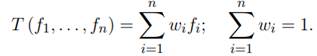 Sea n el número de expertos, fi (θ) la distribución de probabilidad asignada por el experto a la cantidad de interés desconocida θ ∈ Θ y wi la ponderación asignada a cada experto. Entonces la distribución combinada probabilística se puede expresar de la siguiente forma: