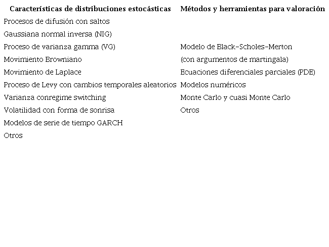 Las opciones exóticas son un tipo de instrumento derivado que presenta modificaciones en la estructura de resultados y, por lo tanto, en la matriz de pagos, producto de cambios sobre las reglas del contrato respecto a los derivados tradicionales (Fernández & Ariño, 1996; García et al., 2000; Hull, 2002; Kolb, 2003). Estas características les otorgan mayor flexibilidad a dichos contratos, tornándolos atractivos y permitiéndoles adaptarse a situaciones diversas, pero su valoración se ha convertido en un problema complejo con amplio desarrollo analítico.