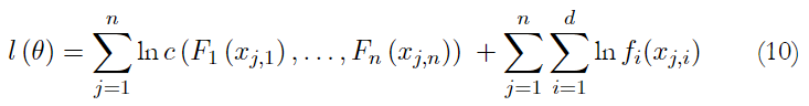Let C be X an r.v.i.i.d. vector with multivariate distribution function F and continuous marginal distribution function F1, . . ., Fn ; the log-likelihood function is defined below: