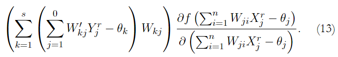 4. The total increment for every pattern, of thresholds and weights ∆W′kj and ∆W′ji, is estimated.