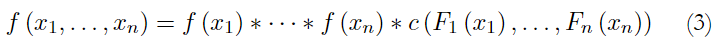 According the Sklar theorem, the n-dimensional density f can be represented as follows: