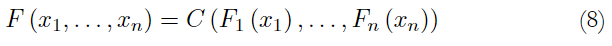 The copula combines marginals to form a multivariate distribution. This theorem provides a parametrization for the multivariate distribution. Given a F distribution with multivariate marginals F1, . . ., Fn , the function