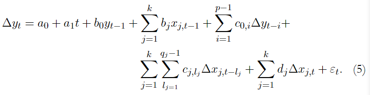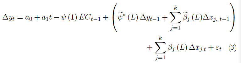 A partir de esta formulación general, Pesaran et al. (2001) demostraron que la ecuación (1) se puede reducir a una representación como la siguiente:
