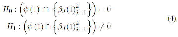 La expresión (4) es la hipótesis nula H0: no hay ninguna relación de largo plazo entre la variable dependiente y las explicativas del modelo. La hipótesis alternativa, H1, es: sí existe esa relación.