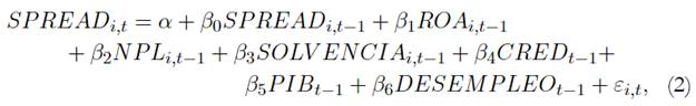 Siguiendo los estudios empíricos sobre el SPREAD, es adoptado un enfoque de panel de datos dinámico debido a la inercia que presentan las series financieras (ver, al respecto, De Moraes y De Mendonça, 2019). A partir de esta idea, el siguiente es el modelo considerado: