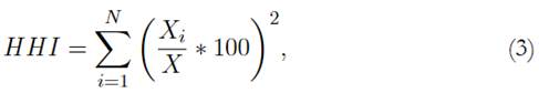 El índice HHI se encuentra entre 0 <HHI< 10 000 y, de acuerdo con sus valores, la estructura de mercado que mide se clasifica en tres tipos de niveles. Si 0 ≤ HHI < 1000 el índice indica un nivel concentración bajo en el mercado, 1000 ≤ HHI < 1800 indica un nivel de concentración moderado y 1800 ≤ HHI es un nivel de concentración alto.