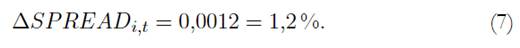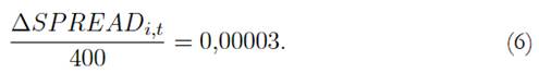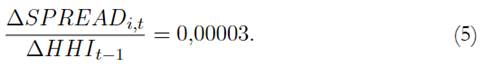 A partir de estos datos hipotéticos, es posible calcular el impacto de la concentración en el SPREAD. Si se toma de nuevo la última ecuación y se reemplaza la variación de la concentración, se tiene: