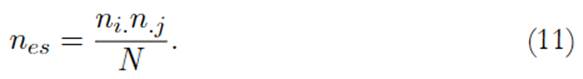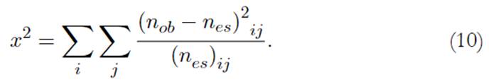 En la cual nob son las frecuencias absolutas y nes las esperadas bajo la correspondencia de la hipótesis nula, las frecuencias esperadas son consentidas mediante esta ecuación: