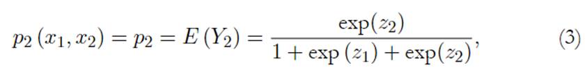 Las variables Y1 e Y2 tienen una uniformidad de Bernouilli (que expresa las variables aleatorias de tipo discreta en sucesos excluyentes), de la forma E (Y1) = p1 y E (Y2) = p2, se formula el multivariante en las siguientes expresiones: