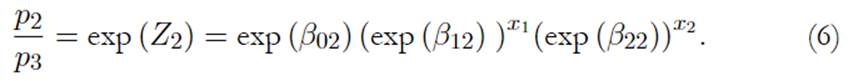 donde Z1 = β01 + β11x1 + β21x2 y Z2 = β02 + β12x1 + β12x2, siendo β01, β11, β21, β02, β12, β22 parámetros de estimación, y: