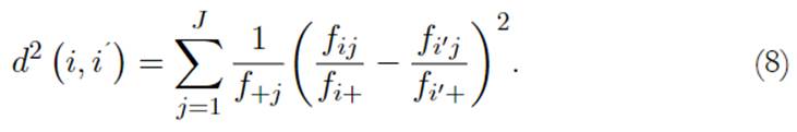 Olivares (1996) y Algañaraz-Soria (2016) indican que esta metodología constituye una herramienta avanzada de análisis de datos en espacios relacionales, que busca plasmar la multiplicidad de forma analítica configurada mediante espacios. El primer parámetro de consideración es la evaluación de la métrica de proximidad entre valores, expresada en la ecuación 8: