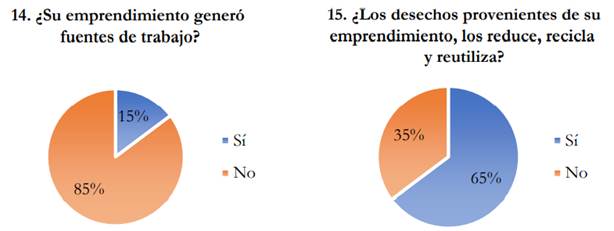 Ante las limitaciones monetarias, les resultaba difícil acceder a mano de obra externa, por lo que sus actividades eran realizadas por el entorno familiar. Según lo expuesto en la Figura 8 este argumento se dio en el 85 % de los beneficiarios, mientras que el 15 % restante poseía el nivel suficiente para contratar mano de obra. En la categoría de cuidado ambiental el 65 % de los beneficiarios arguyen que realizan algún proceso en el cual rehúsan determinados desechos, esto se adhería más en el sector agrícola y ganadero.