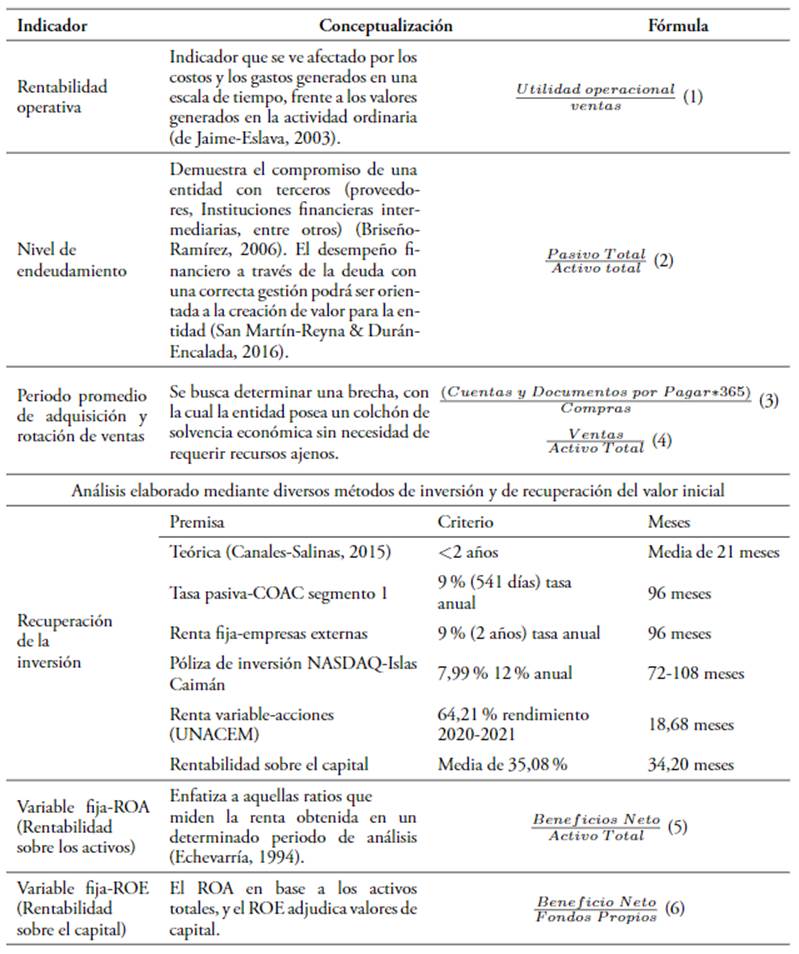 Etapa 2: definir las proporciones financieras que permitan la evaluación mediante la premisa de sostenibilidad e insolvencia empresarial. La Tabla 2 presenta las metodologías que permiten establecer las inferencias clave en la consideración de una empresa sólida en un mercado altamente competitivo. Mientras que, la Tabla 3 detalla los indicadores financieros a usar en el modelo estadístico.