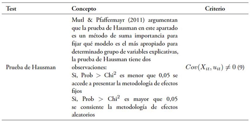 Por consiguiente, el estudio debe medir qué variable influye significativamente a la sostenibilidad y generación de valor económico, esto se presenta en la Tabla 7, especificando el estadístico de efectos fijos y aleatorios ajustado a la prueba de Hausman. Con dicho criterio se da resolución a las etapas 3 y 4 de la gestión económica-financiera.