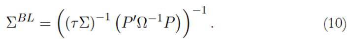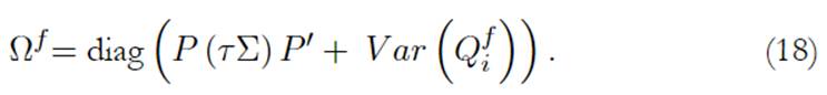 Como resultado, el retorno esperado y las covarianzas del modelo BL se ajustan al tomar views difusas. De esta forma, las fórmulas (9) y (10) vienen dadas ahora por:
