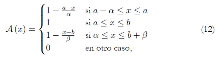 donde, [a, b] es el intervalo de tolerancia, con ancho izquierdo de tamaño a − α > 0 y ancho derecho de tamaño β − b > 0, como muestra la Figura 1.