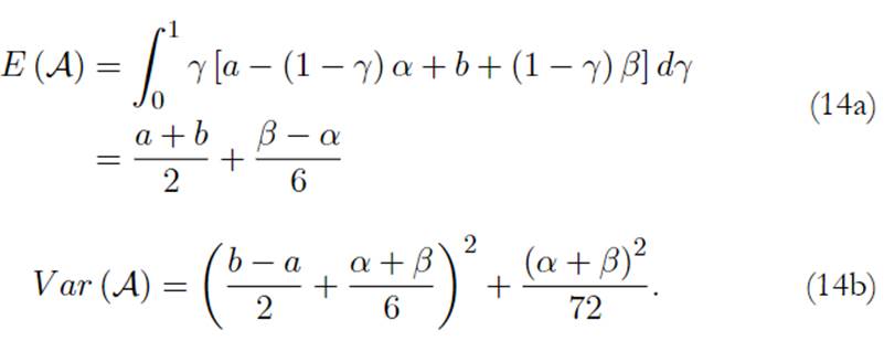 Carlsson et al. (2002) muestran que el valor esperado y la varianza -en el sentido clásico- del número trapezoidal A vienen dado por: