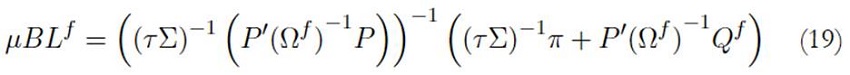 Finalmente, el problema de optimización del modelo BL con views difusas (BLf ), puede resolverse mediante programación cuadrática, como sugiere Fang et al. (2018). Por tanto, de forma análoga a la ecuación (11) se tiene: