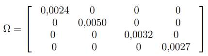 Además, se toma como parámetro τ = 0, 05, el cual representa el nivel de confianza en las views que se han formulado. Con esta información se obtiene la matriz Ω como indica la ecuación (7).