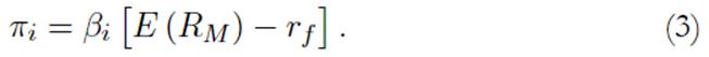 donde, E (Ri ) es el retorno esperado del activo i, E (RM ) es el retorno esperado del portafolio de mercado y rf es la tasa de interés libre de riesgo.