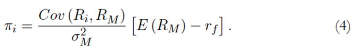es la medida de riesgo sistemático de cada activo i, donde σ2M es la varianza del portafolio de mercado. Si se define πi como el