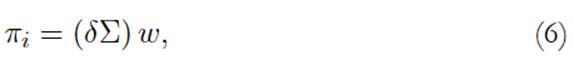 . De esta forma, se obtienen los retornos esperados de equilibrio o retornos implícitos. Al despejar el vector w de la ecuación (6), se encuentra la solución para el portafolio MV: wMV = (δΣ)−1πi . Una formulación alternativa para esta solución de equilibrio, también conocida como optimización inversa, se encuentra en Bertsimas et al. (2012).