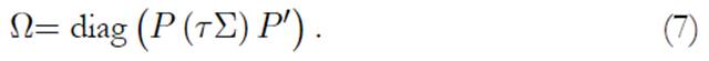 Las views del inversionista pueden expresarse como P µ ∼ N (Q, Ω) donde P ∈ Rk×n asocia al activo i involucrado por la view k, Q ∈ Rk describe el retorno esperado de la view y Ω ∈ Rk×k es su matriz de covarianzas. Además, la matriz Ω puede ser estimada como sigue:
