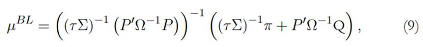 Además, los pesos óptimos del portafolio BL vienen dados por: