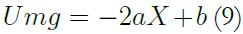 , es decir, una línea recta con pendiente negativa para representar la caída de la utilidad marginal a medida que la utilidad total crece. Su punto de corte con el eje de las ordenadas es b y el corte con el eje de las abscisas sería