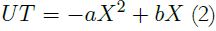 La imposición progresiva en términos de utilidad marginal puede ser ex- puesta por medio de una función del tipo , en donde UT representaría la utilidad total producto de la demanda y consumo de determinado bien. Resolviendo, por medio de completación de cuadrados, los puntos de corte en eje de las abscisas estarían representado en: