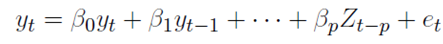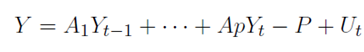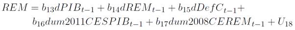 (1)Este análisis investigativo utiliza como base el modelo anterior. Como ya lo planteaban Santos-Munguía y Pérez (2020) en él, “Y es una serie de variables observadas en el tiempo t y p es el número máximo de rezagos que tienen las variables que integran el sistema” (p. 713). Y contiene las remesas de trabajadores, el déficit comercial y el PIB, además el término de error U t , es considerado no correlacionado y tiene matriz de covarianza v.