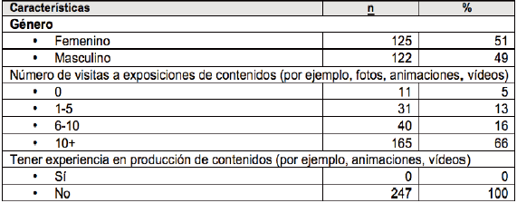 Los resultados de la tabla 1 muestran que el número de participantes femeninos y masculinos es casi igual. El número de veces que los estudiantes visitaron las exposiciones indicó que la mitad de los estudiantes había asistido a las exposiciones de contenidos digitales más de diez veces. Sin embargo, nadie tiene aún la experiencia de la producción de estos contenidos.