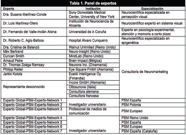 Los contactos con los expertos se desarrollaron en tres fases. En una primera etapa, y para realizar un diagnóstico preliminar sobre el estado y retos de los SAP o PSM (siglas en inglés) europeos se solicitó la colaboración de expertos académicos en televisión pública, miembros de la red internacional Global PSM Experts Network (https://globalpsmexperts.net/). En una segunda fase se aborda el estado de la cuestión a partir de la colaboración de consultores internacionales, miembros del Neuromarketing Science & Business Association (NMSBA). Este grupo reveló las prácticas investigadoras de las televisiones públicas (metodología, objetivos, objeto de estudio) y evaluó su proyección futura en el campo mediático.