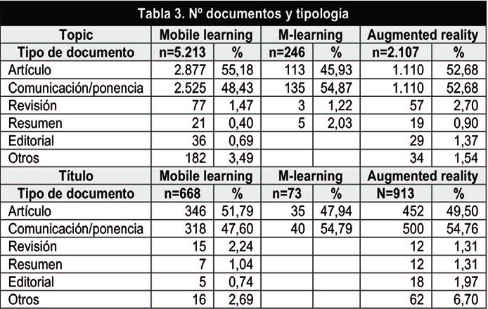 Los datos muestran la situación del fenómeno en el momento analizado, y dada la importancia de las fuentes, esta tendencia es fiel reflejo del nivel de penetración que tiene el m-learning y la tecnología RA en la investigación científica, siendo una referencia oportuna para posteriores investigaciones sectoriales.