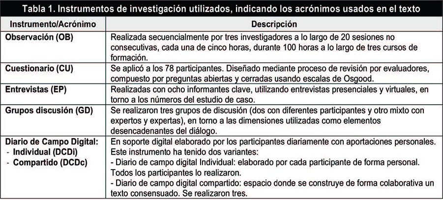 La recogida de datos se produjo del 2015 al 2017, utilizando los instrumentos que se detallan en la Tabla 1.