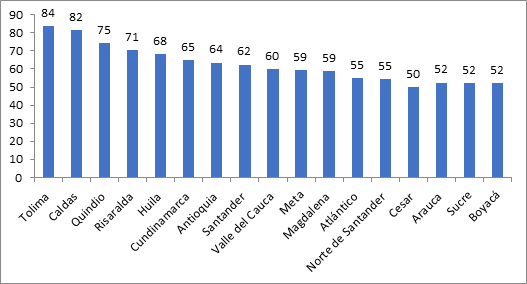 La mayor mortalidad por enfermedad coronaria isquémica se evidenció en la región central de Colombia, especialmente en el eje cafetero, donde se presenta el mayor consumo de tabaco47. La mortalidad debida a enfermedad coronaria isquémica, por cada 100 000 habitantes, entre el 2005 y el 2013 se representa en la Figura 248. El problema es especialmente grave en los hombres, ya que, el 93% de ellos tiene factores de riesgo como tabaquismo, dislipidemia, obesidad abdominal, DM o hipertensión arterial49.