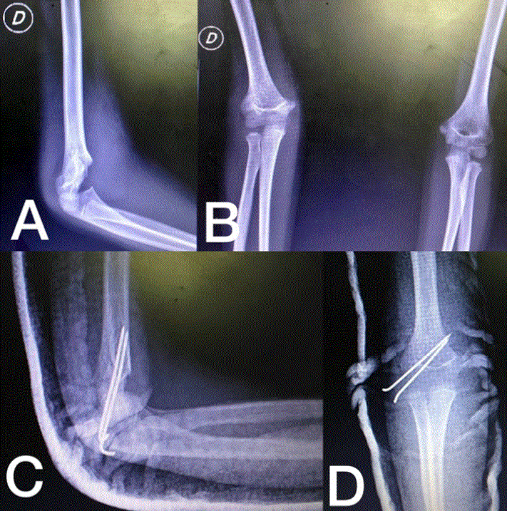 A pesar de que las fracturas supracondíleas desplazadas pueden ser tratadas de diferentes formas: reducción cerrada sin fijación, tracción de tejidos blandos, tracción esquelética y reducción abierta con fijación, con resultados clínicos aceptables, el tratamiento de elección es la reducción cerrada y fijación con pines percutáneos porque tiene resultados predecibles con menores complicaciones y menor estancia hospitalaria2,22,31.