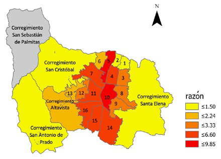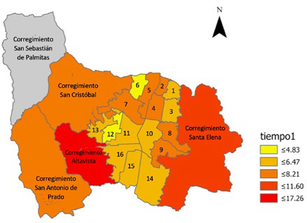 La mayor frecuencia de atención prehospitalaria se registró en la comuna 10 (La Candelaria) y en la comuna 8 (Villa Hermosa). Las razones de ocurrencia, y los detalles geográficos en la ciudad se pueden apreciar en la Figura 1.