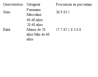 El 63,1% de casos fue de individuos de sexo masculino. La edad media fue 34 años, el 67%, en el intervalo entre 20 y 40 (Tabla 1).